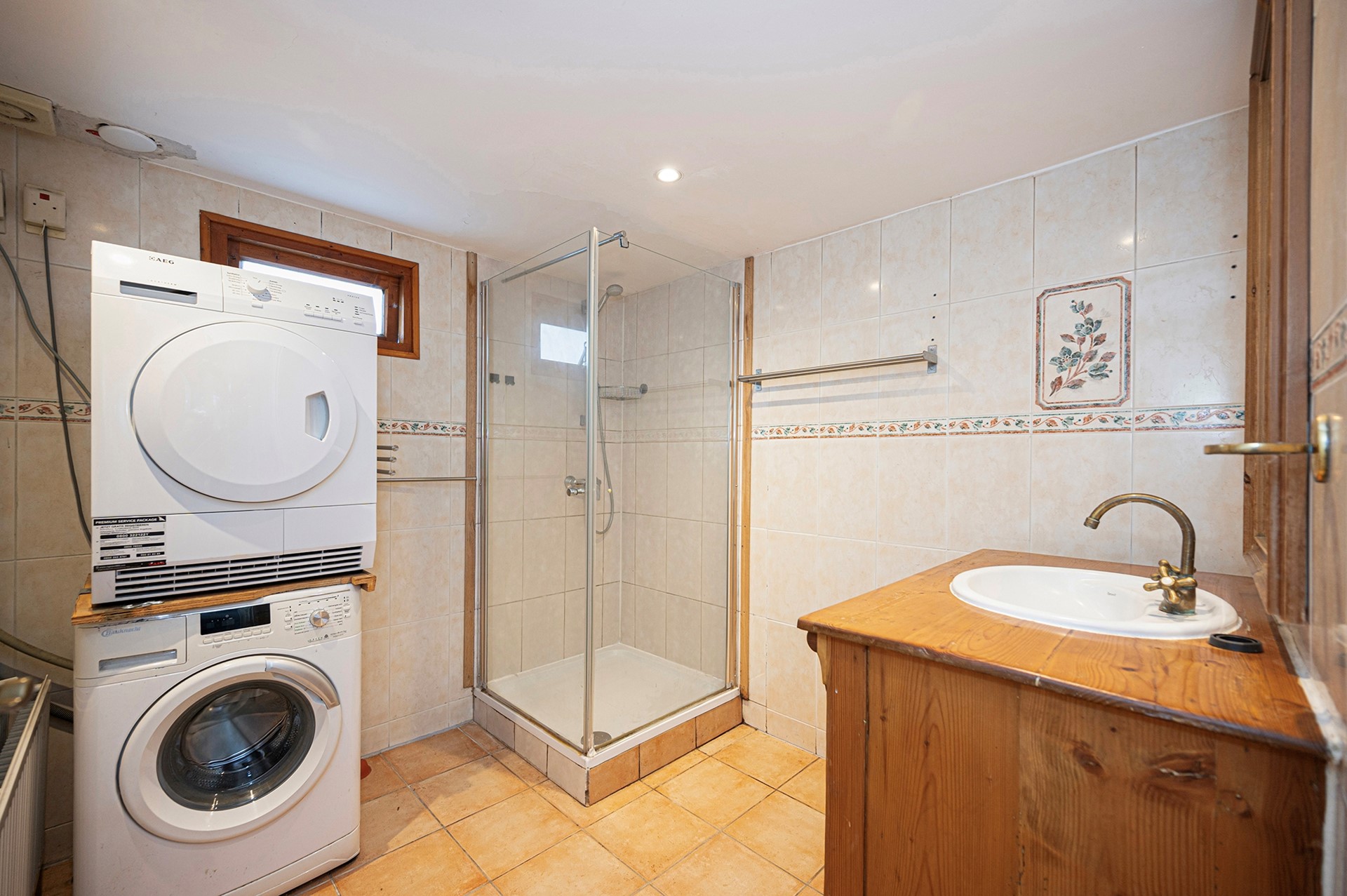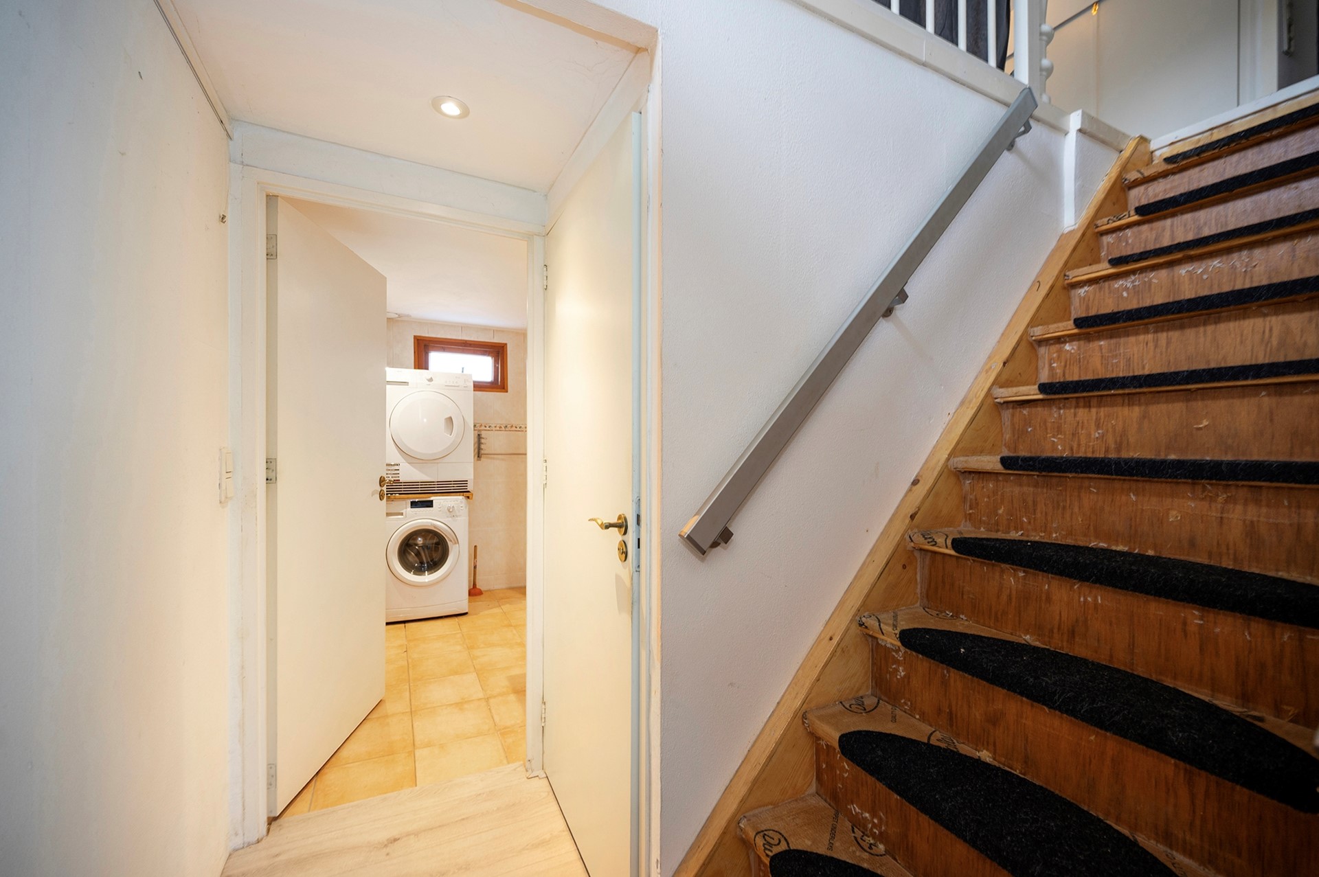 Ook vind je op de begane grond het toilet en een badkamer uitgerust met een comfortabele douchecabine, wastafel en aansluitingen voor een wasmachine en droger.