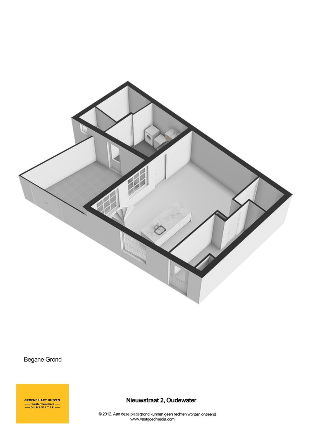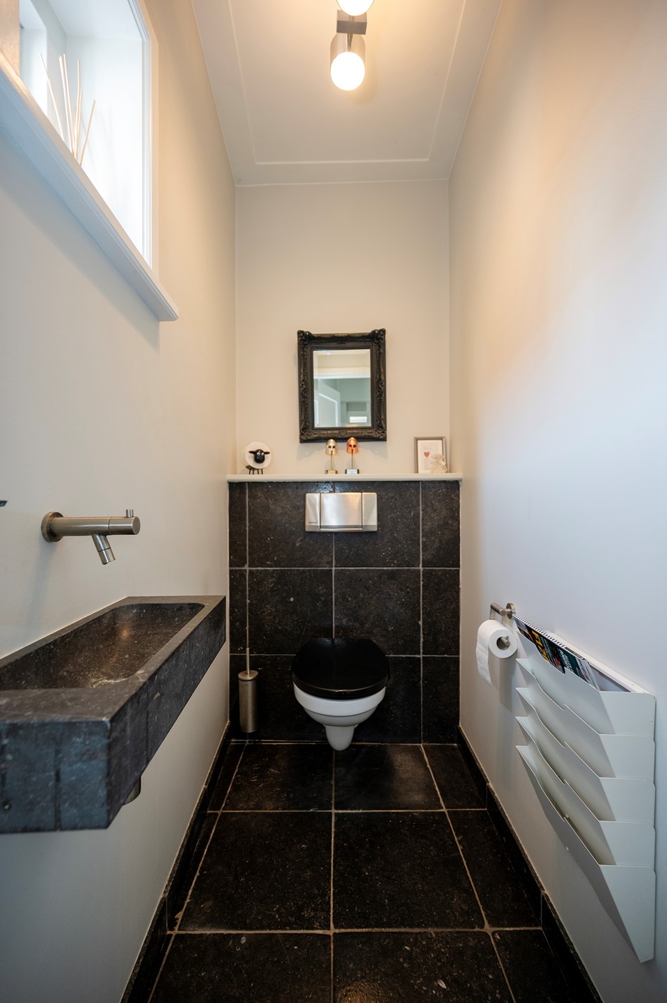 Verder vind je hier de bijkeuken met keukenblok en voorziening voor wasmachine en droger, ruim toilet, inpandige berging en entree naar de stadstuin op het zuidoosten met achterom.