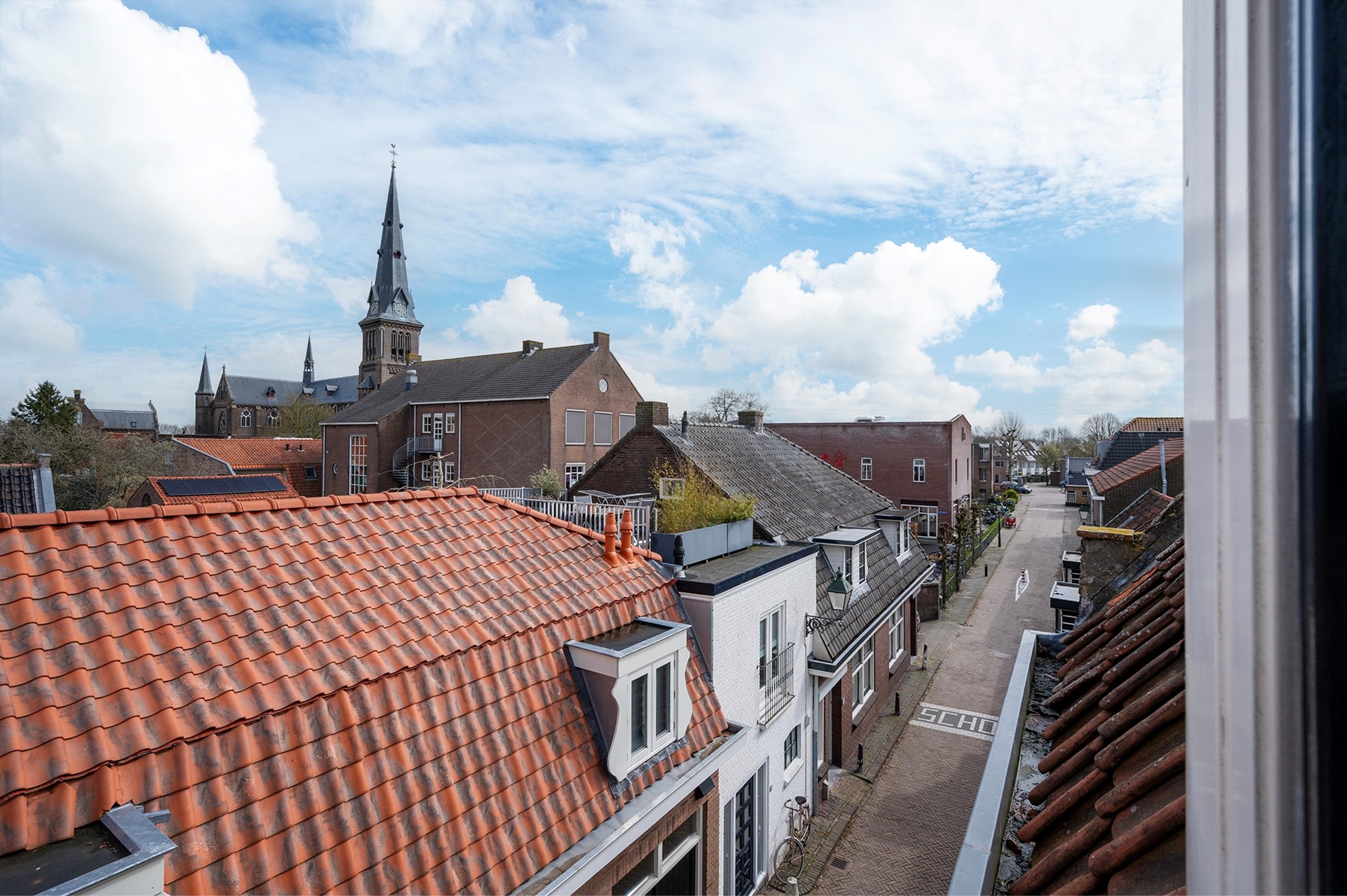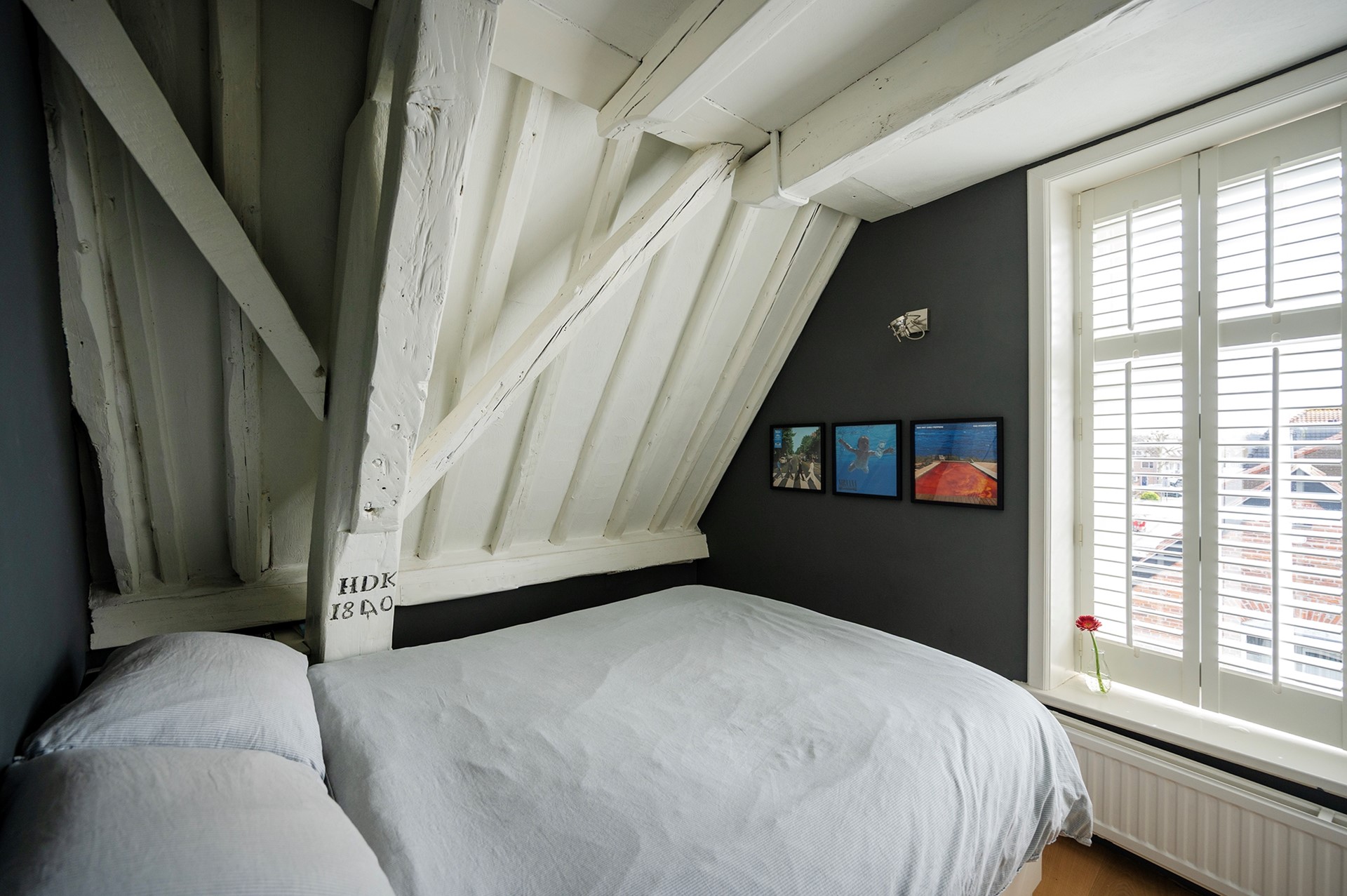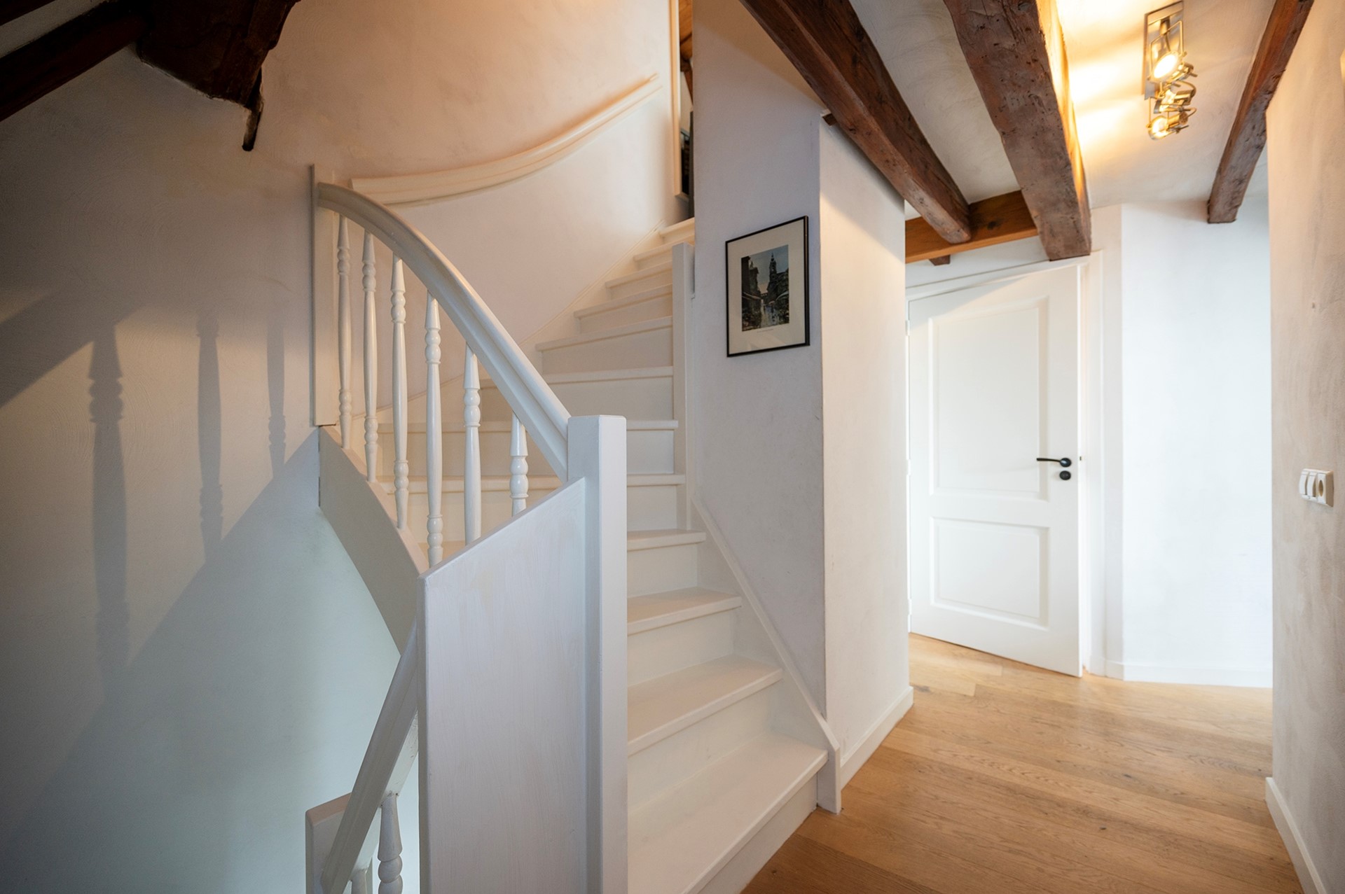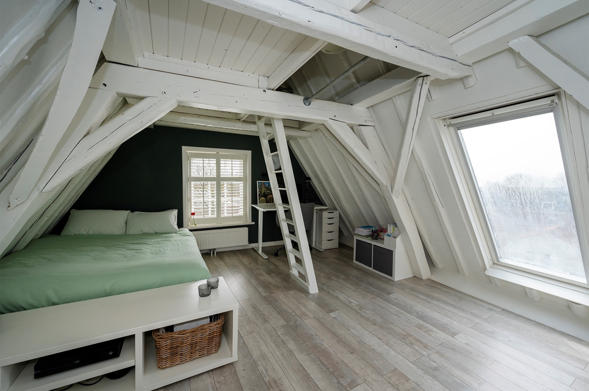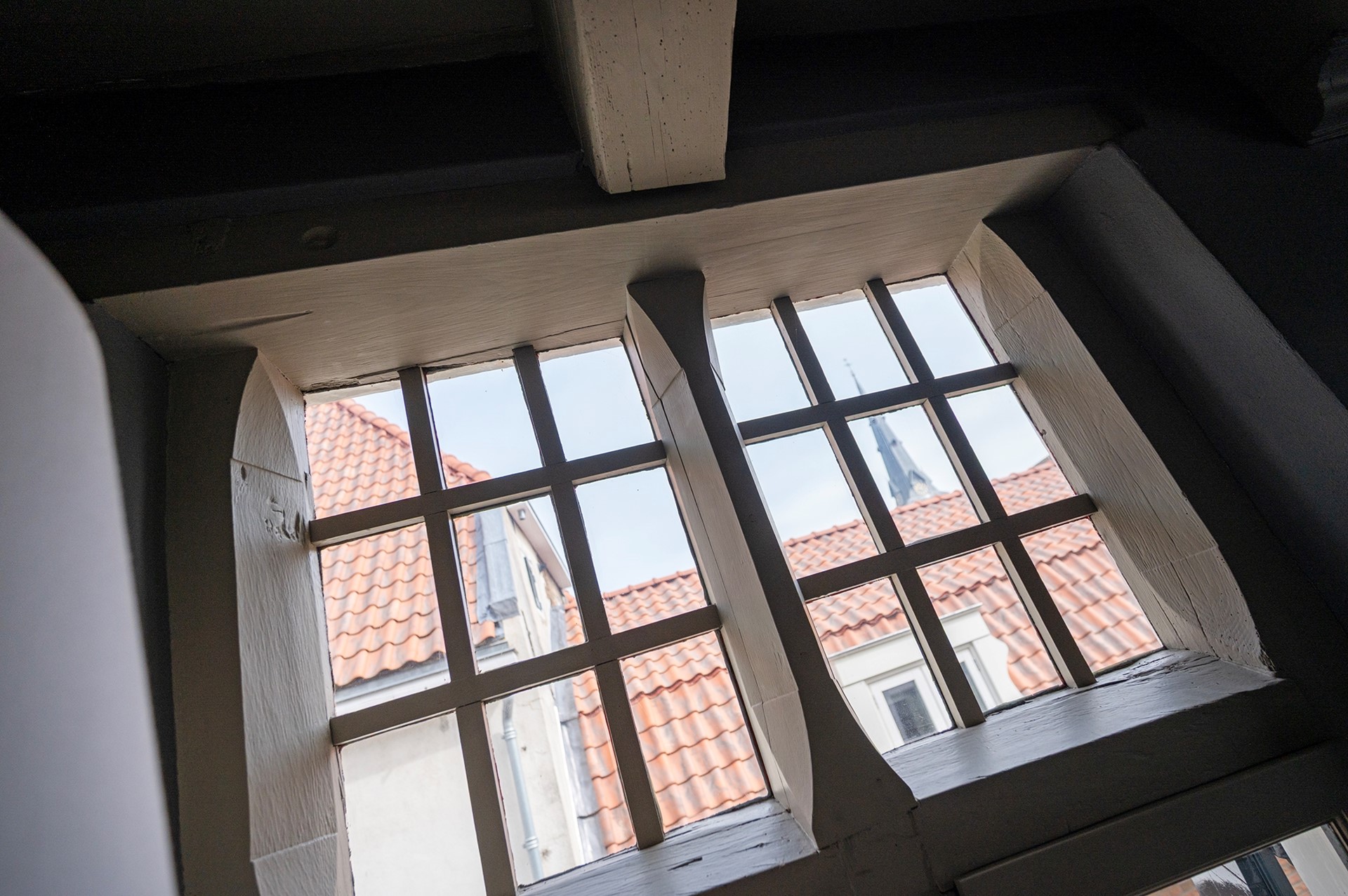Tot slot op de derde verdieping een hal met bergzolder, inbouwkast en cv-ruimte. Op deze verdieping bevindt zich ook een flinke derde slaapkamer met vliering en een dakraam met wederom uitzicht over de oude binnenstad en de Grote of St. Michaëlskerk.