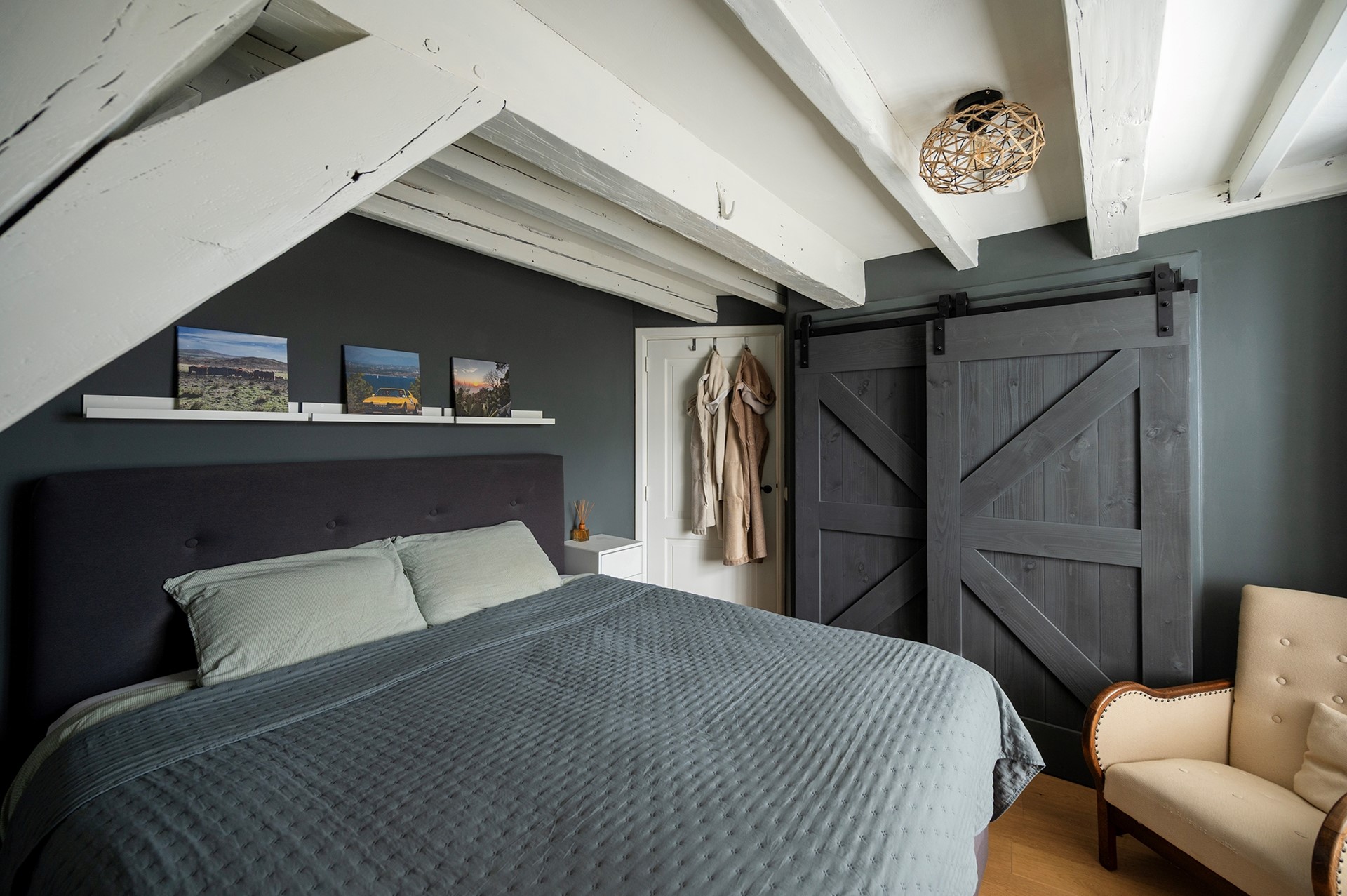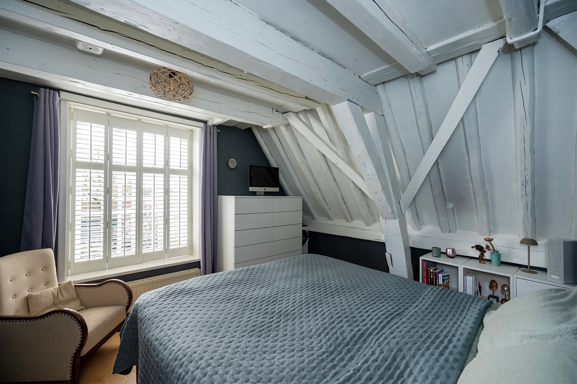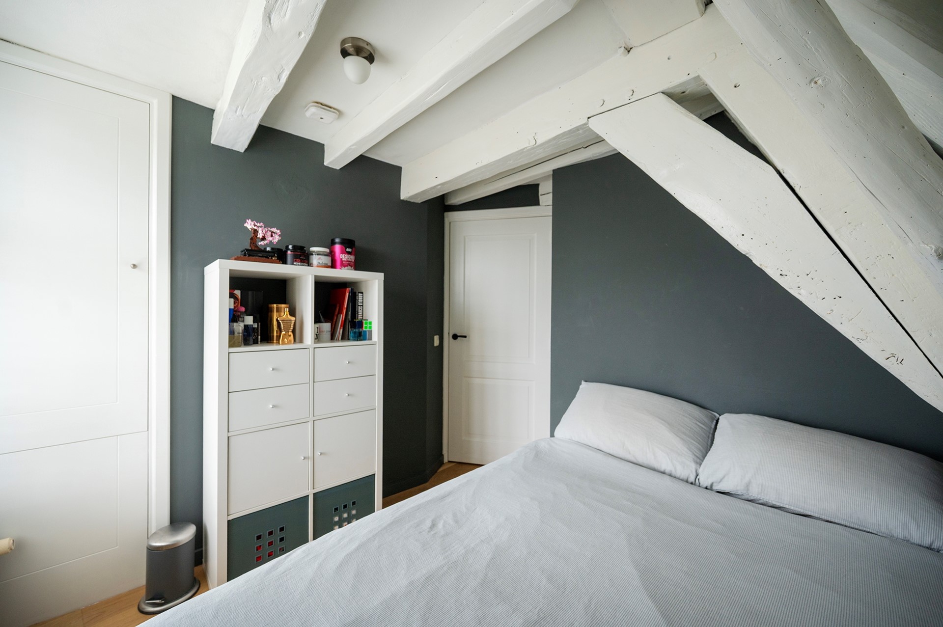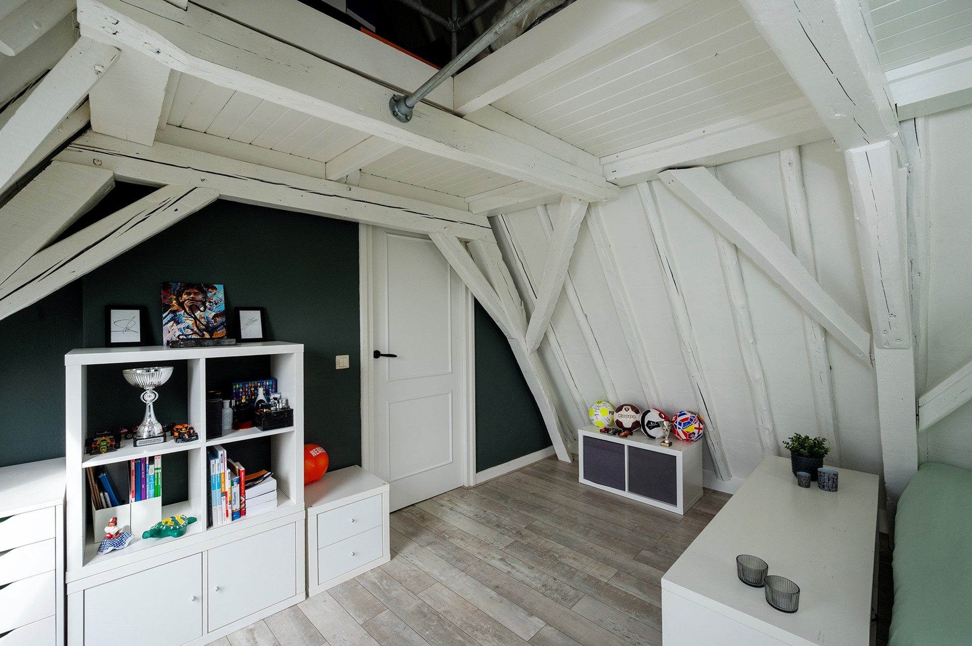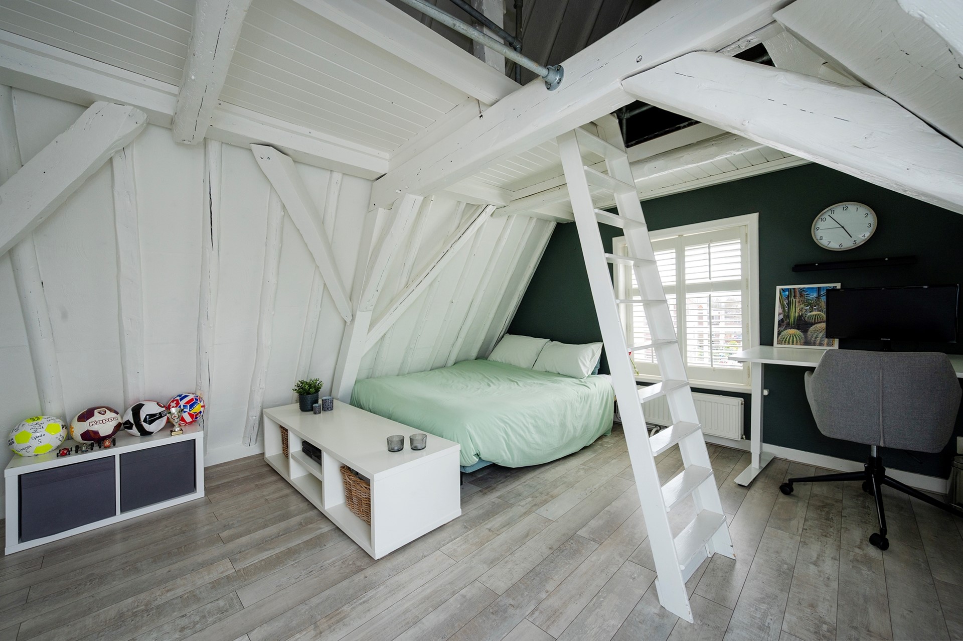 Tot slot op de derde verdieping een hal met bergzolder, inbouwkast en cv-ruimte. Op deze verdieping bevindt zich ook een flinke derde slaapkamer met vliering en een dakraam met wederom uitzicht over de oude binnenstad en de Grote of St. Michaëlskerk.